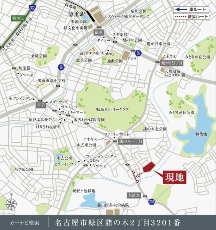 - 名古屋市営地下鉄桜通線「徳重」駅まで車約6分(約2,390m~2,570m)
