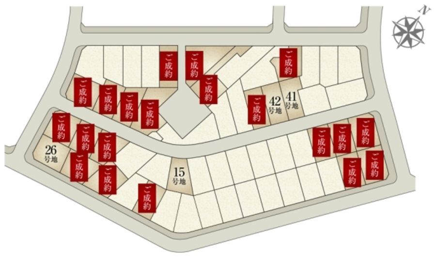 - 170.08m2(15号地)、195.15m2(26号地)、170.24m2(41号地)、171.21m2(42号地) 私道負担なし