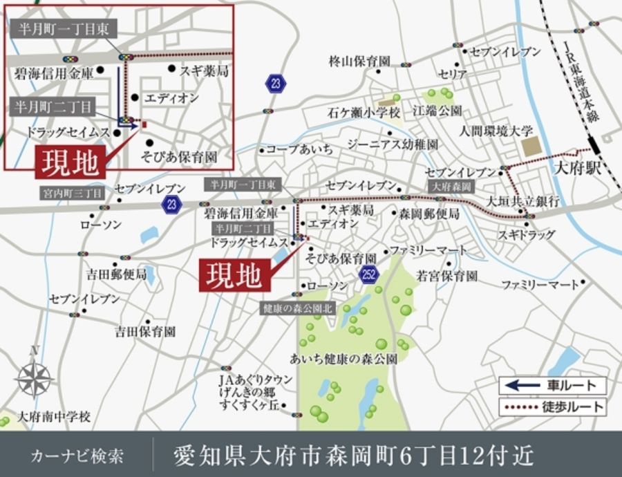 - ※周辺施設は、分譲地の所在地から半径3km以内の施設(大型施設は半径5km以内)のみを表示しています。