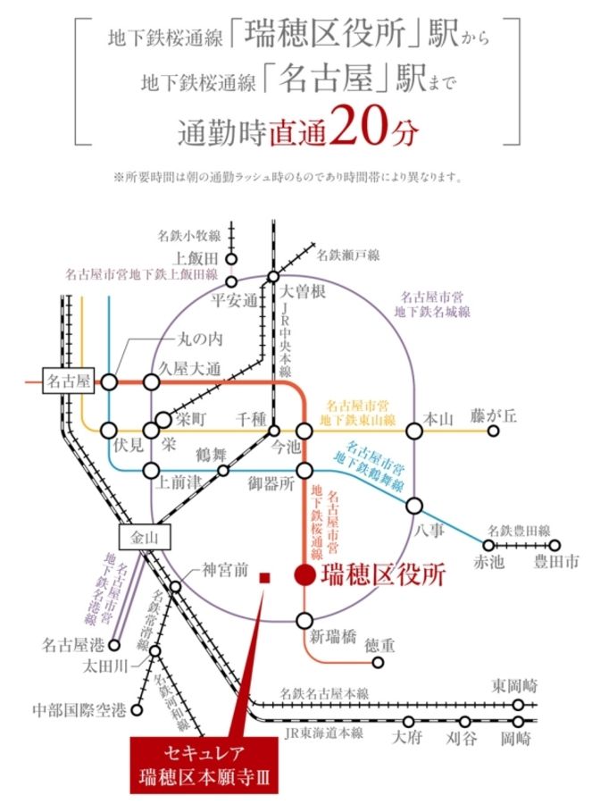 セキュレア瑞穂区本願寺IIIは、名古屋市営地下鉄桜通線「瑞穂区役所」駅まで徒歩9分です。