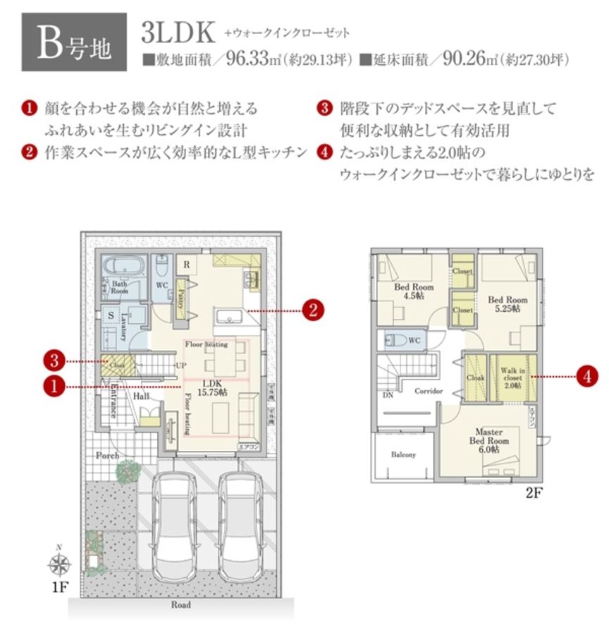 - 96.50m2(A号地)、96.33m2(B号地) 全て私道負担なし