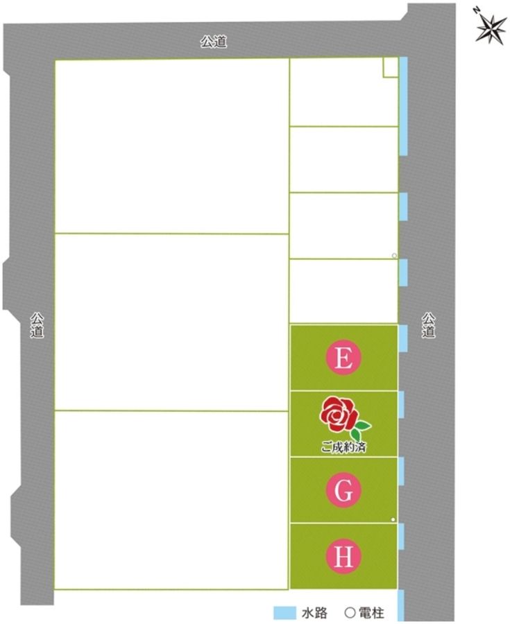 - 189.00m2(E号地)、188.99m2(G号地)、187.78m2(H号地) 私道負担なし