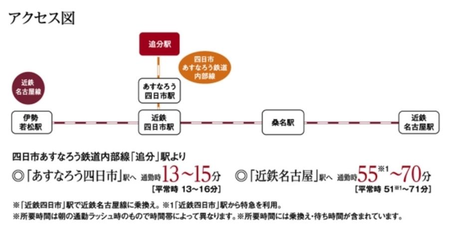 - 四日市あすなろう鉄道内部線「追分」駅まで徒歩7分