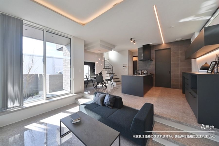 明るいロースタイルリビングとくつろぎ空間にもなるヌックがあります。