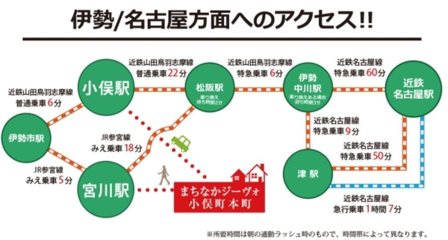 近鉄山田鳥羽志摩線「小俣」駅まで車約4分(約2,320m)