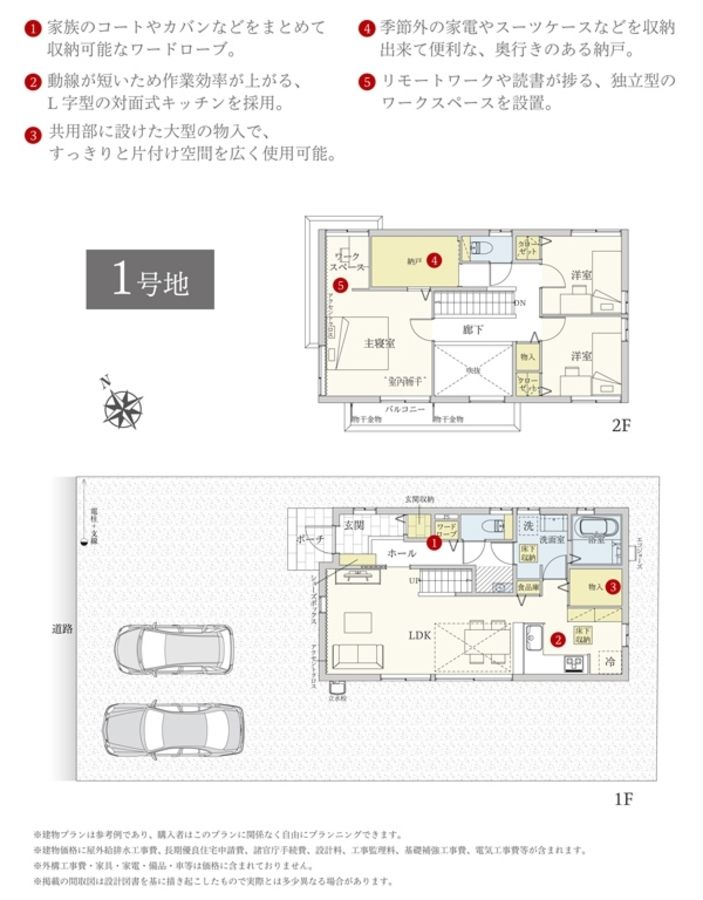 - 193.41m2(1号地)、159.35m2(5号地) 全て私道負担なし
