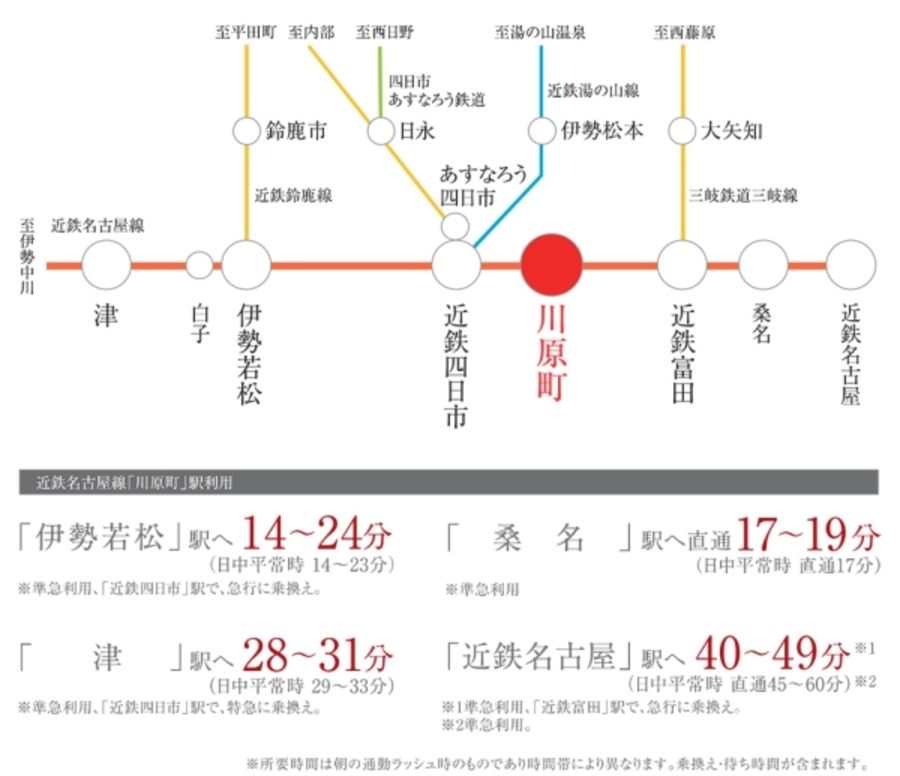 近鉄名古屋線「近鉄四日市」駅まで徒歩15分圏内。