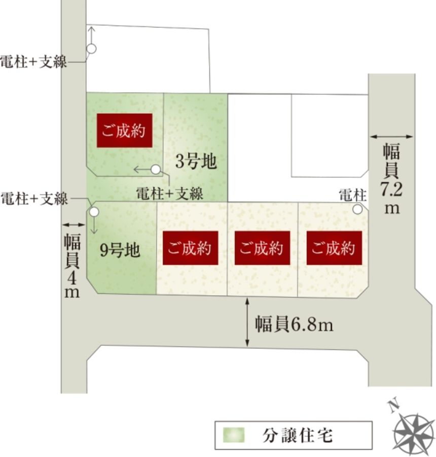 - 222.21m2(3号地)、153.61m2(9号地) 全て私道負担なし