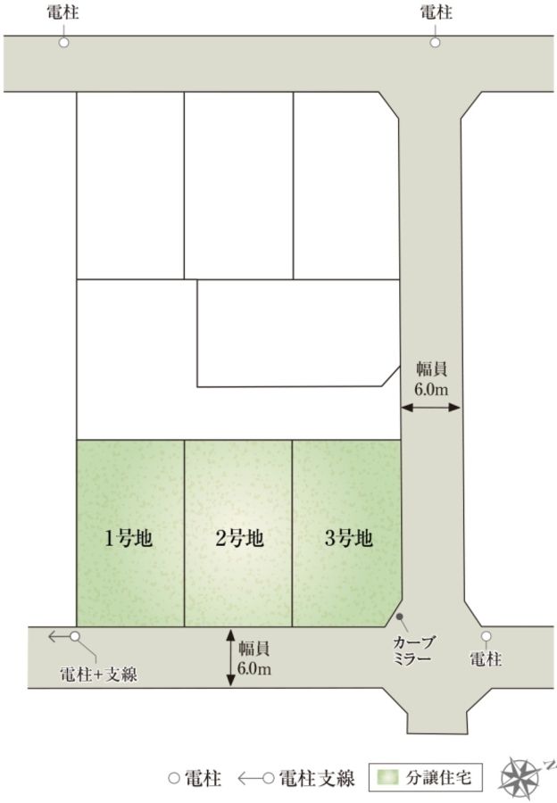 - 186.34m2(1号地)、186.35m2(2号地)、184.32m2(3号地) 私道負担なし