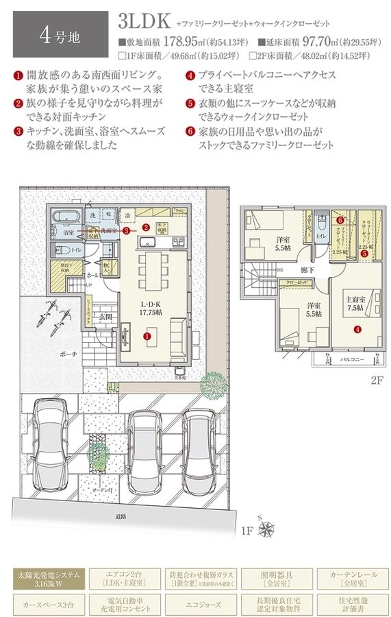 - 178.95m2(4号地)、177.49m2(5号地) 全て私道負担なし