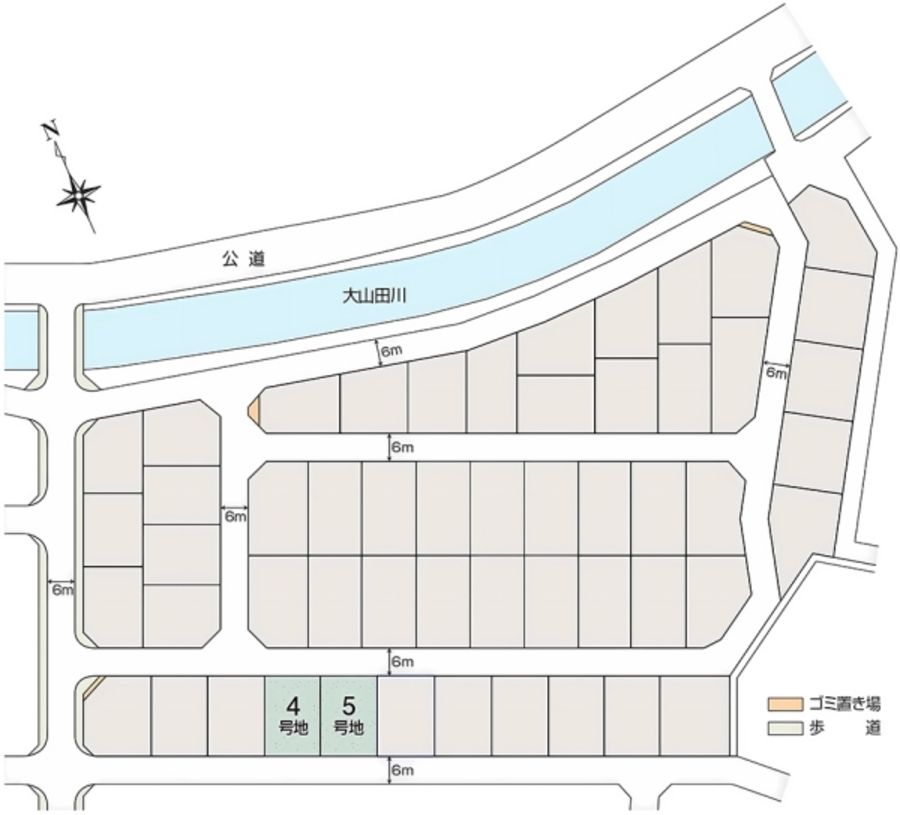 - 185.22m2(4号地)、185.23m2(5号地) 全て私道負担なし
