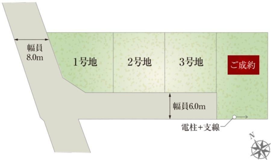 - 165.93m2(1号地)、165.93m2(2号地)、165.92m2(3号地) 全て私道負担なし