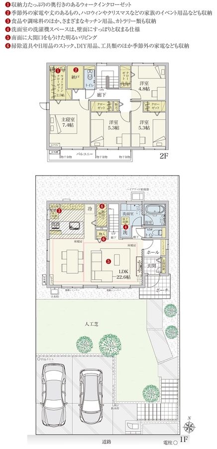 2台分のカースペースや日当たりの良い庭でガーデニングも楽しめます