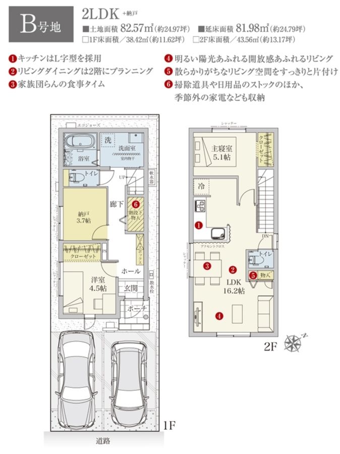 - 82.57m2(B号地) 私道負担なし