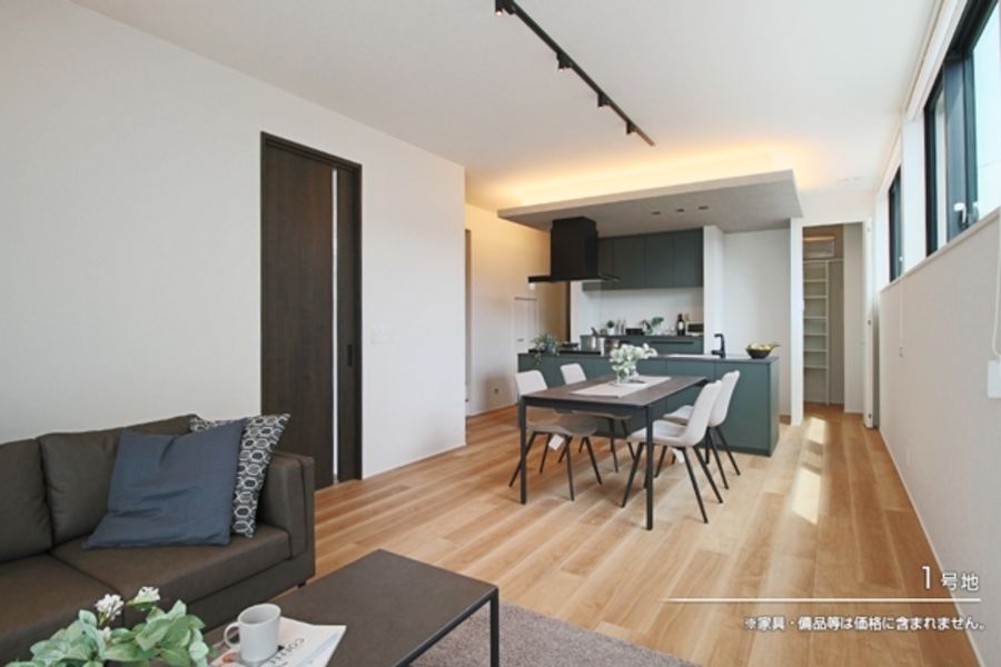 LDKは21.6帖、アイランド型キッチンを採用し開放感のある大空間を演出。