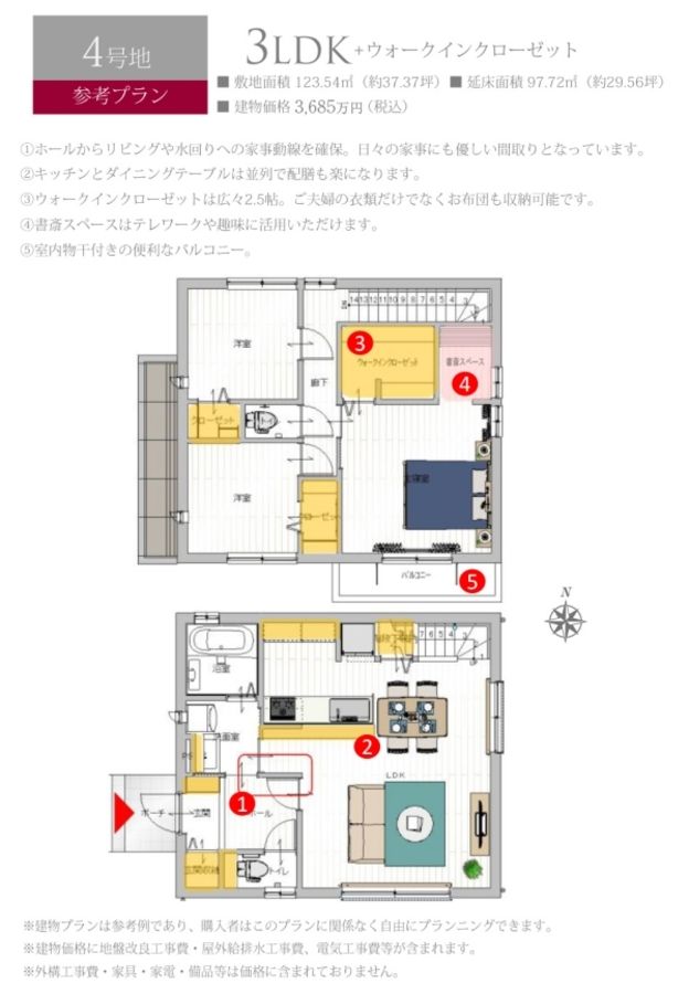 - 123.54m2 私道負担あり 133.61m2のうち、5分の1の負担持分(4号地)