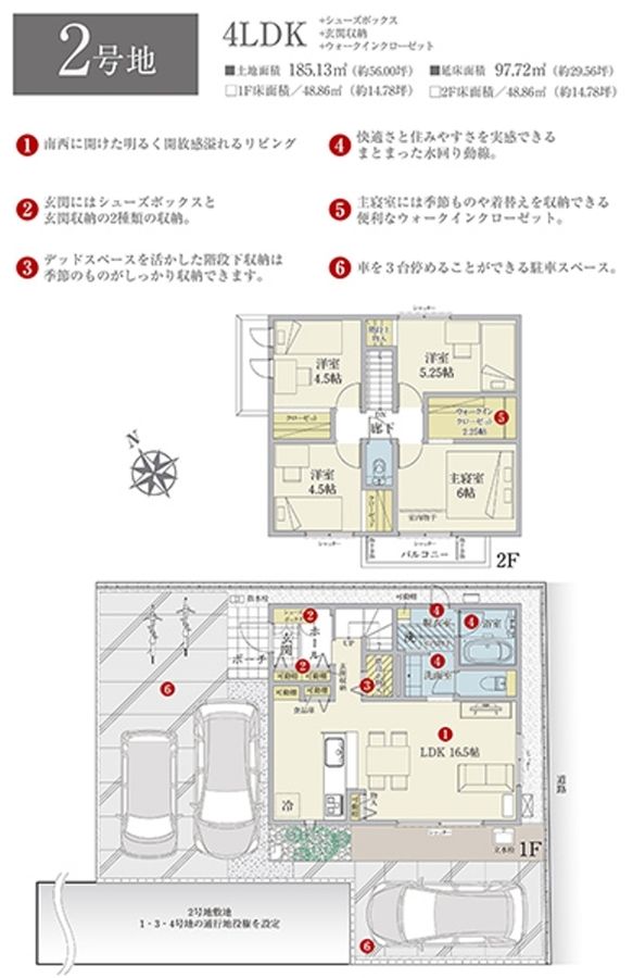 - 185.13m2(2号地) 私道負担なし