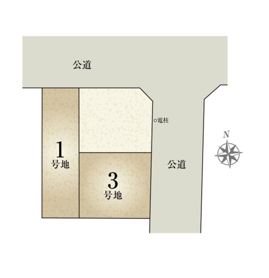 - 127.82m2(1号地)、126.02m2(3号地) 全て私道負担なし