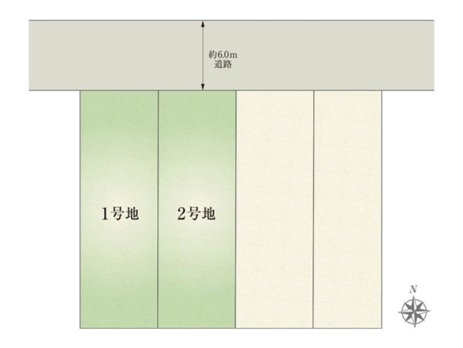- 144.75m2(1号地)、145.00m2(2号地) 全て私道負担なし