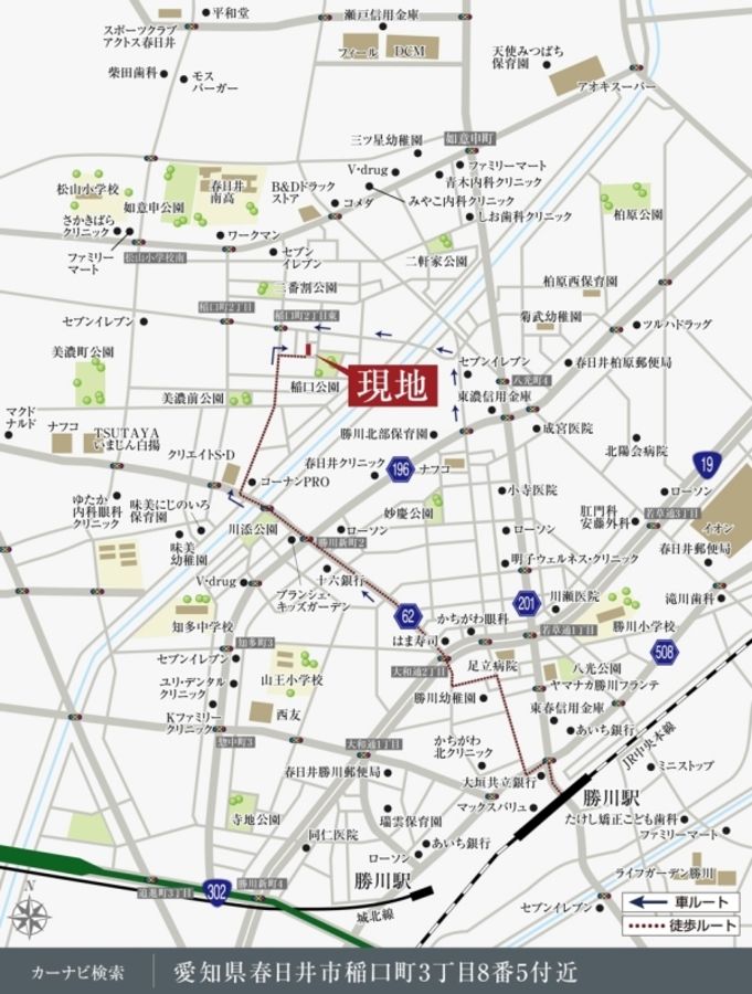 徒歩9分の「稲口」バス停より名鉄バスでJR中央本線「勝川」駅まで約9分