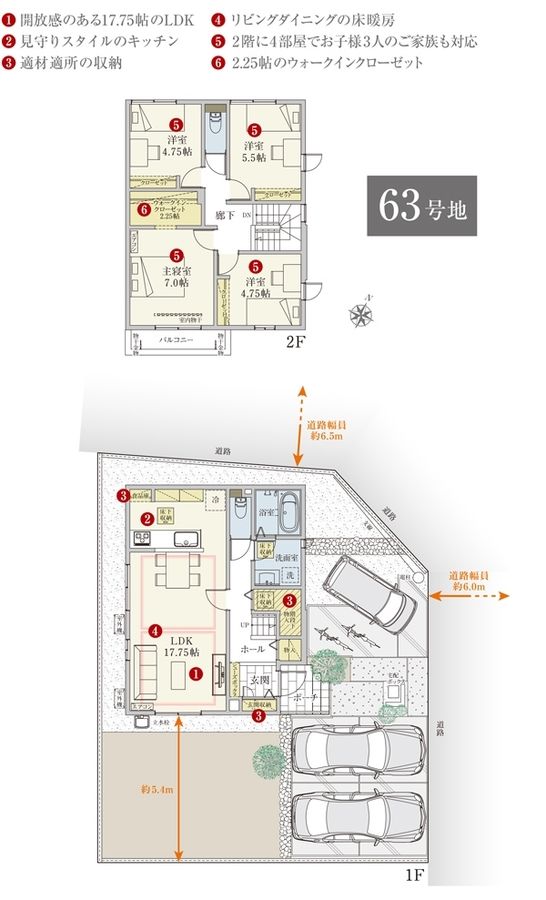 - 166.48m2(61号地)、166.49m2(62号地)、168.56m2(63号地) 私道負担なし