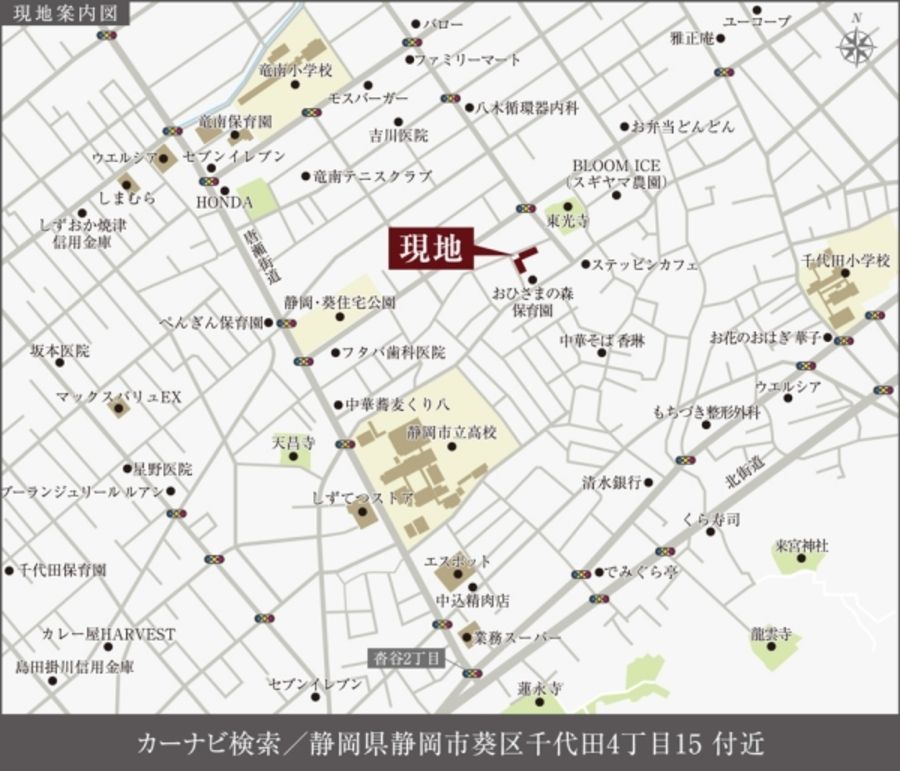 - ※周辺施設は、分譲地の所在地から半径3km以内の施設(大型施設は半径5km以内)のみを表示しています。
