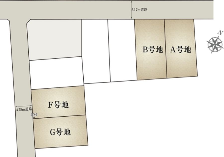 - 131.19m2(A号地)、135.06m2(B号地)、116.65m2(F号地)、121.13m2(G号地) 私道負担なし