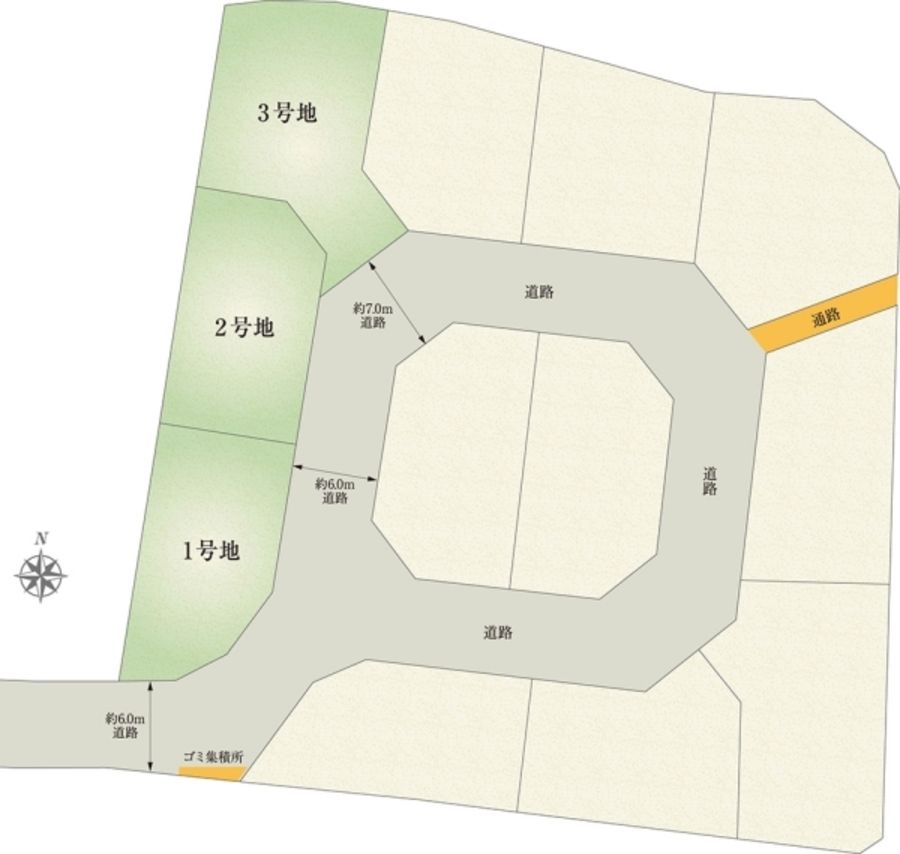 - 153.68m2(1号地)、154.97m2(2号地)、183.37m2(3号地) 私道負担なし