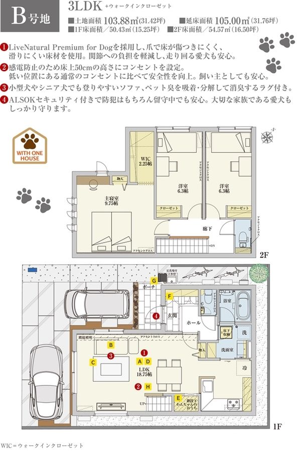 - 101.68m2(A号地)、105.00m2(B号地)