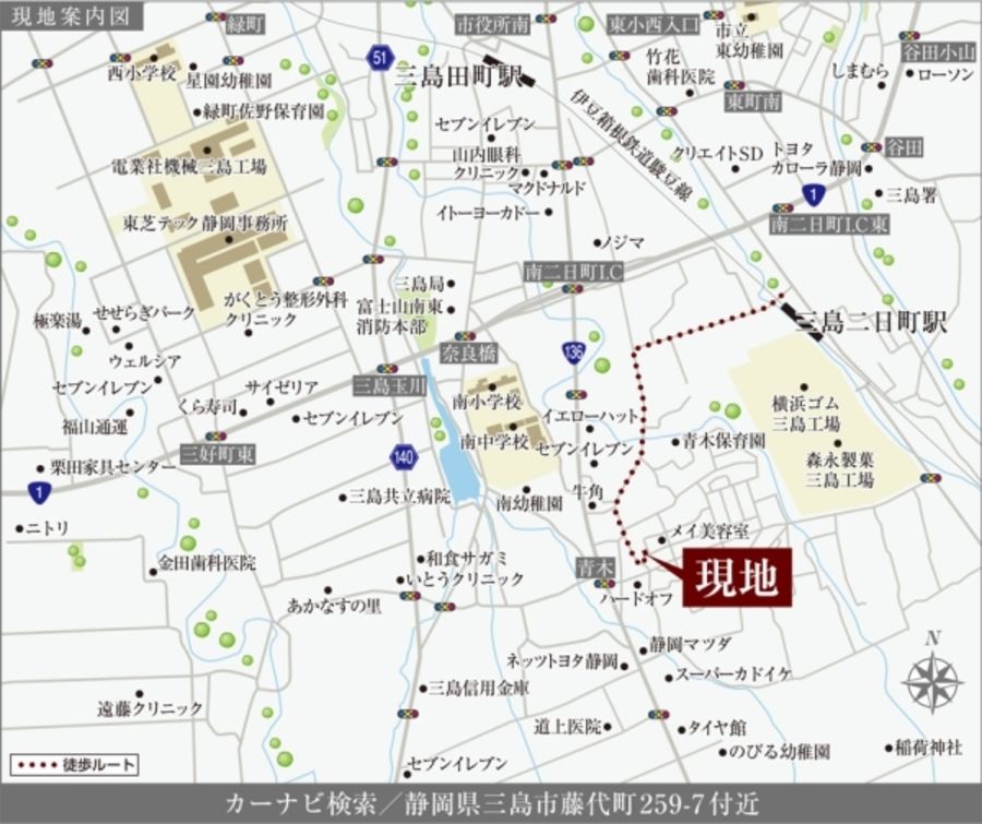 伊豆箱根鉄道駿豆線「三島二日町」駅まで徒歩12分、国道一号線「南二日町」インターチェンジまで車約5分と、マイカー通勤・休日のお出かけやお買い物等、アクセスの良い立地です。