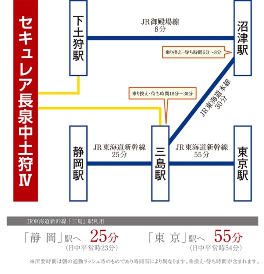 JR東海道新幹線「三島」駅まで徒歩20分~21分