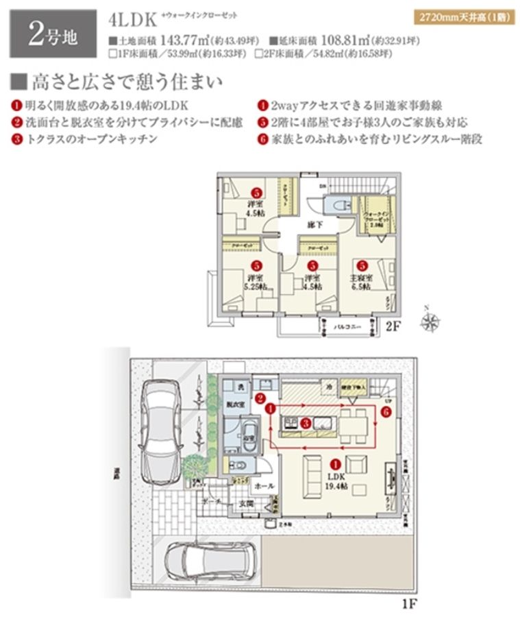 - 143.77m2(1号地)、143.77m2(2号地) 全て私道負担なし