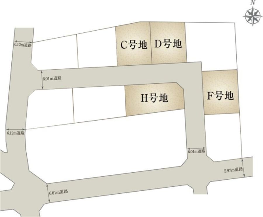 - 140.07m2(C号地)、140.05m2(D号地)、148.49m2(F号地)、162.00m2(H号地) 私道負担なし