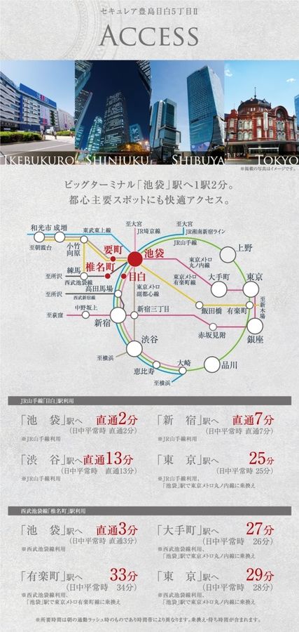 JR山手線「目白」駅、東武鉄道東上線・JR山手線「池袋」駅、西武池袋線「椎名町」駅、