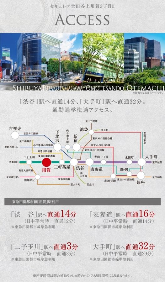 東急田園都市線「用賀」駅まで徒歩9分。「渋谷」駅や「大手町」駅に直通アクセス可!