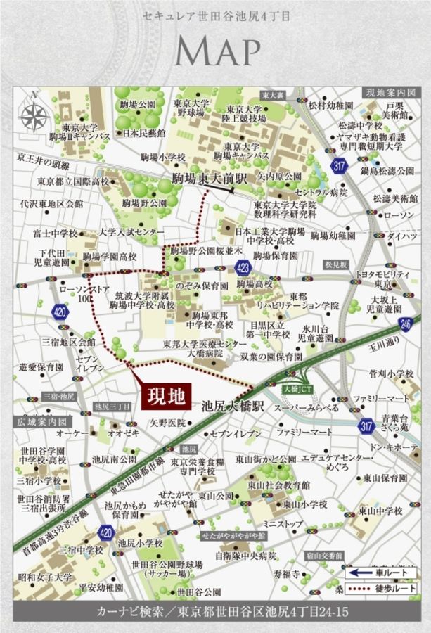 東急田園都市線「池尻大橋」駅、京王井の頭線「駒場東大前」駅の2駅が徒歩圏内