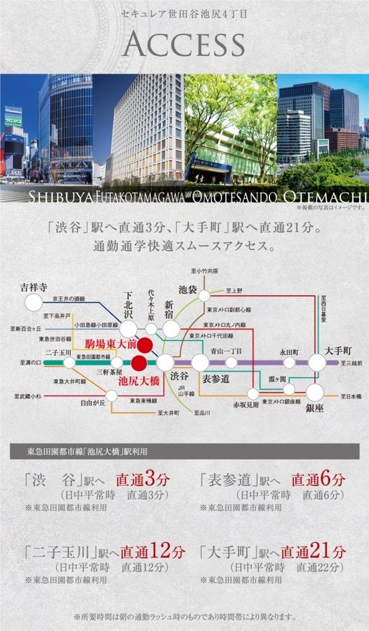 「渋谷」駅へ 直通3分、「大手町」駅へ 直通21分