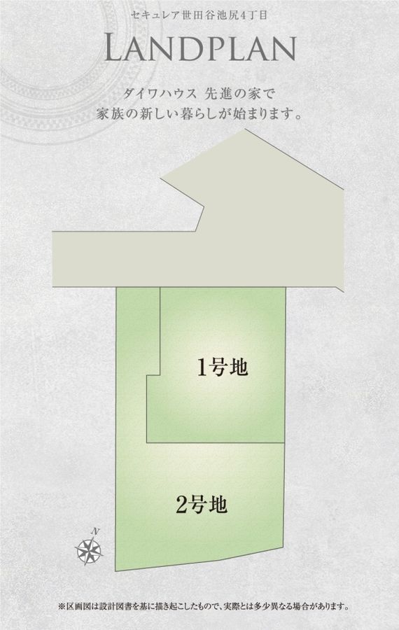- 84.64m2(1号地)、107.92m2(2号地) 全て私道負担なし