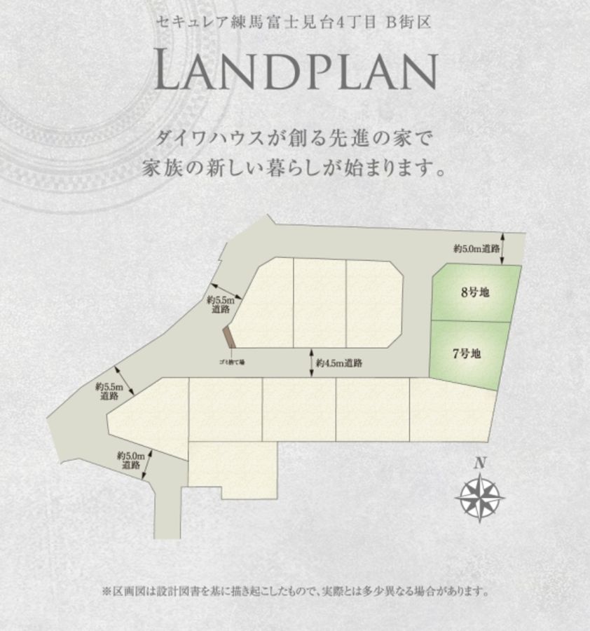 - 110.21m2(7号地)、110.50m2(8号地) 全て私道負担なし