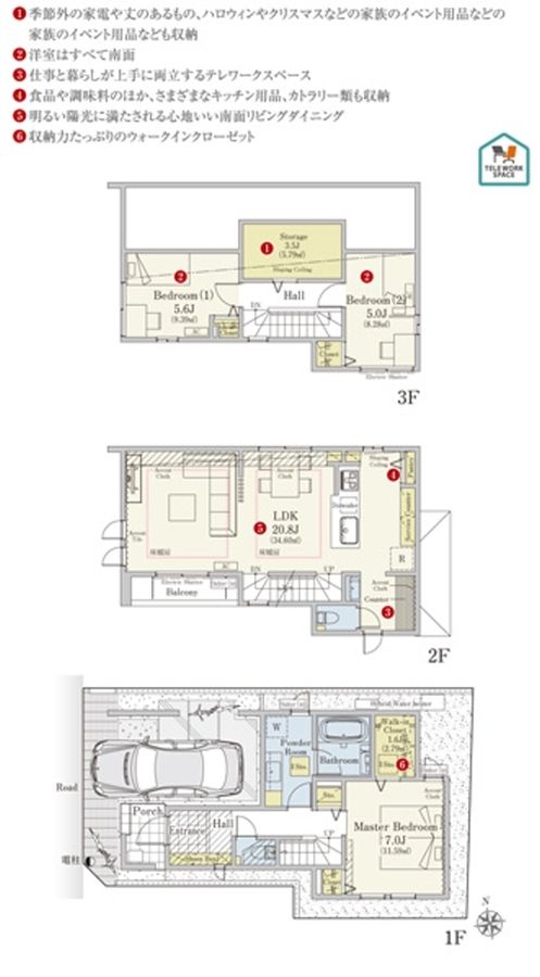 通風と採光に配慮した3階建てで、LDKは広々20帖超。居室はすべて2面採光。