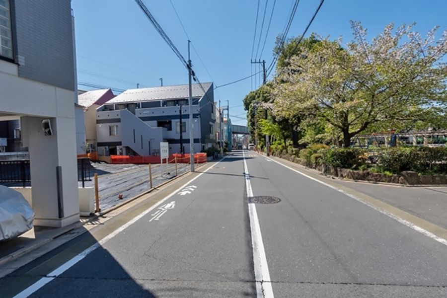一方で、現地周辺は第一種低層住居専用地域で落ち着きのある住宅街。