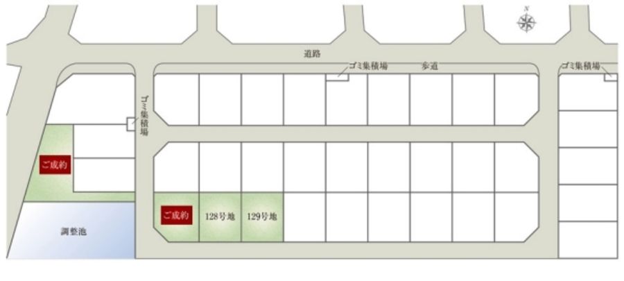 - 200.85m2(128号地)、200.86m2(129号地) 全て私道負担なし