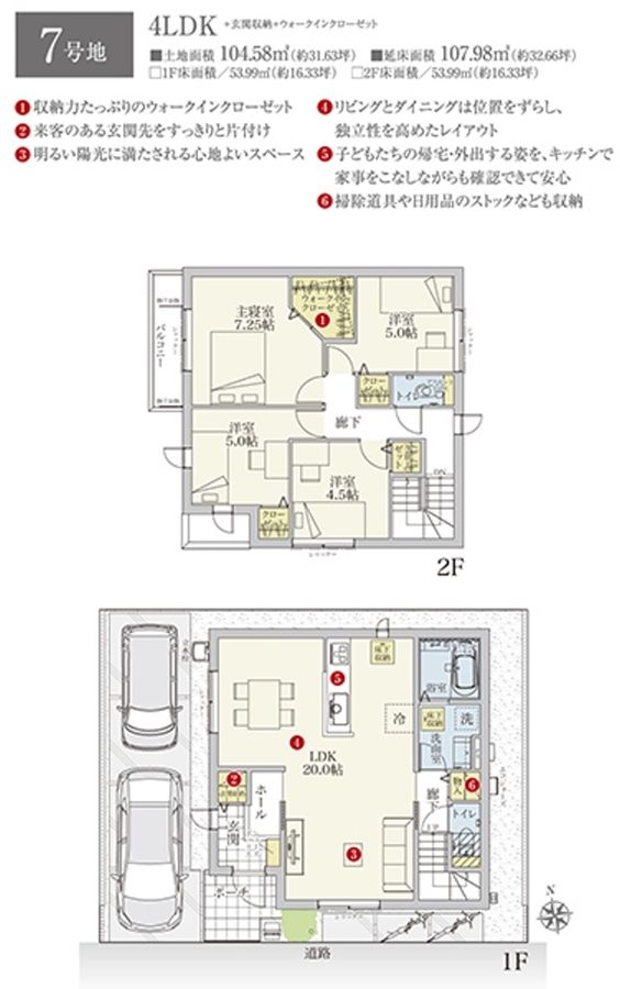 104.58m2(7号地)~110.27m2(15号地) 全て私道負担なし
