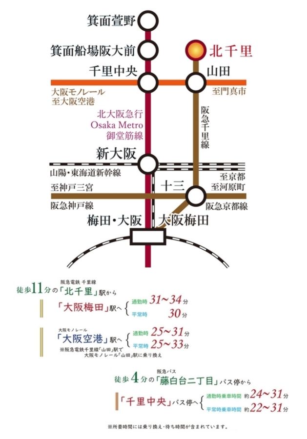 - 阪急電鉄千里線「北千里」駅まで徒歩11分