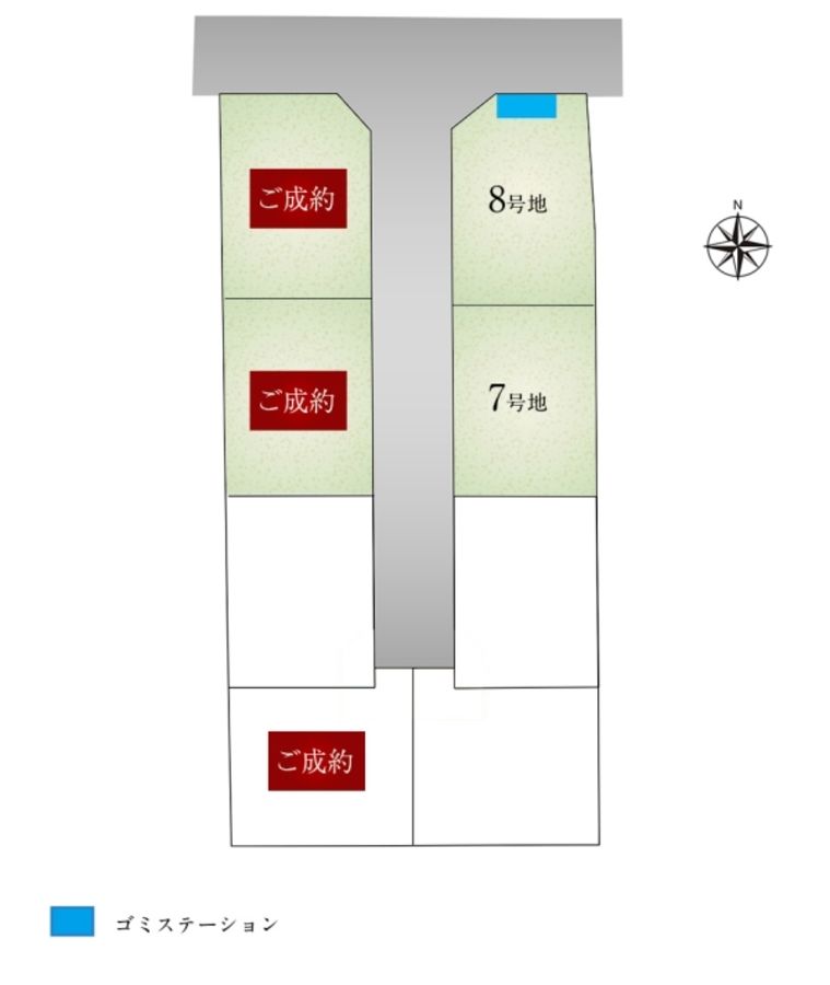 - 93.08m2(7号地)、96.50m2(8号地) 全て私道負担なし