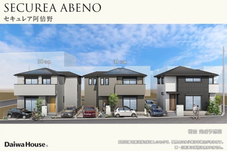 (物件概要補足)●物件名称/セキュレア阿倍野 I期(本店木造住宅事業部)(分譲住宅)●所在地/大阪府大阪市阿倍野区共立通二丁目93-14他●総戸数/37戸●当社戸数/37戸●販売戸数/6戸●売主/大和ハウス工業株式会社●販売会社(取引態様)/売主●交通/Osaka Metro 谷町線「阿倍野」駅まで徒歩10分●建物面積/94.60m2(26号地)~108.89m2(31号地)●土地面積および私道負担/112.12m2 私道負担あり 1252.26m2のうち、37分の1の負担持分(7号地)、103.32m2 私道負担あり 1252.26m2のうち、37分の1の負担持分(8号地)、95.48m2 私道負担あり 1252.26m2のうち、37分の1の負担持分(25号地)、91.44m2 私道負担あり 1252.26m2のうち、37分の1の負担持分(26号地)、110.62m2 私道負担あり 1252.26m2のうち、37分の1の負担持分(30号地)、112.46m2 私道負担あり 1252.26m2のうち、37分の1の負担持分(31号地)●構造および階数/木造2階建(6戸)●工事完了年月/令和8年4月予定 4戸、5月予定 2戸●引渡可能年月/令和8年4月予定 4戸、5月予定 1戸、6月予定 1戸●販売価格(税込)/8,330万円~12,000万円●最多販売価格帯/8,000万円台、9,000万円台 各2戸 ※1,000万円単位●その他の費用/管理組合準備金 200,000円(引渡し時一括)●登録受付期間/令和8年5月9日AM10:00~AM11:00 ■受付場所:本店木造住宅事業部(大和ハウス大阪ビル)※お申込みの際は、ご本人様確認書類(運転免許証等)・前年の源泉徴収票が必要です。●抽選日/令和8年5月9日(土)AM11:30本店木造住宅事業部(大和ハウス大阪ビル)にて抽選を実施します。●間取り/3LDK(7号地、8号地、25号地、26号地)、4LDK(30号地、31号地)●主たる設備等の概要/電気:関西電力(他の小売電気事業者の選択も可能です)、ガス:都市ガス、水道:市営水道、下水:公共下水道●道路の幅員/約5.0m、約6.0m(アスファルト舗装)●建築確認番号/第ERI-25038749号他●土地の権利形態/ 所有権●用途地域/都市計画 第二種中高層住居専用地域/市街化区域