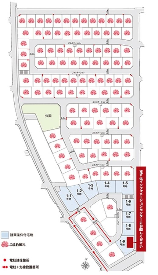 - 175.42m2(1-6号地)~329.17m2(1-1号地) 全て私道負担なし