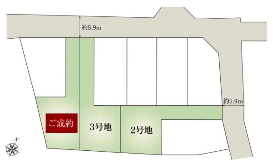 - 166.54m2(2号地)、169.28m2(3号地) 全て私道負担なし