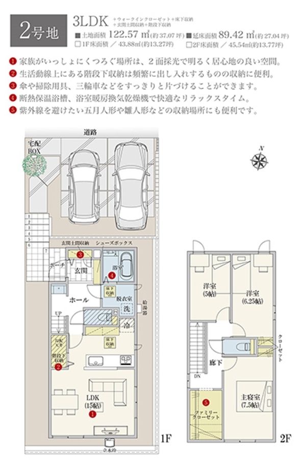 - 122.57m2(2号地)、123.83m2(3号地) 全て私道負担なし