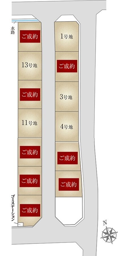 - 3LDK(1号地、11号地)、4LDK(3号地、4号地、13号地)